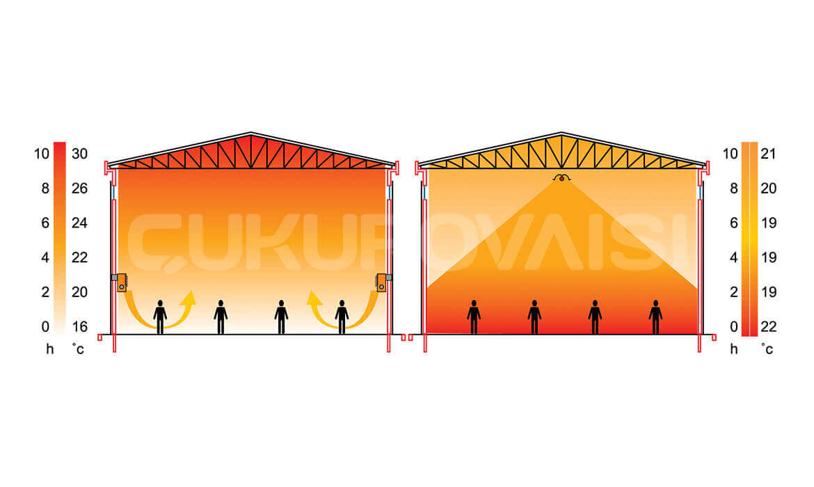 • Merkezi Sıcak Hava üflemeli sistemlere göre